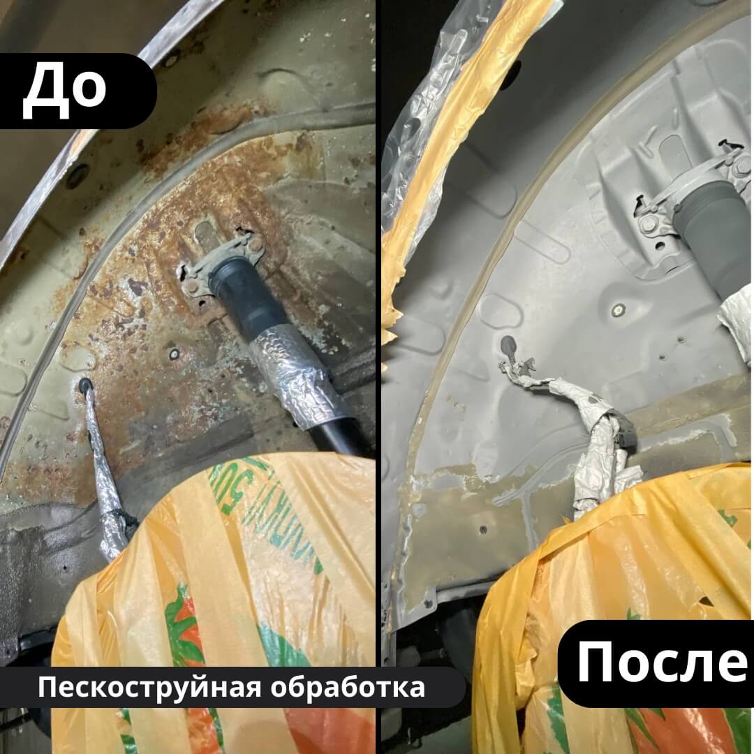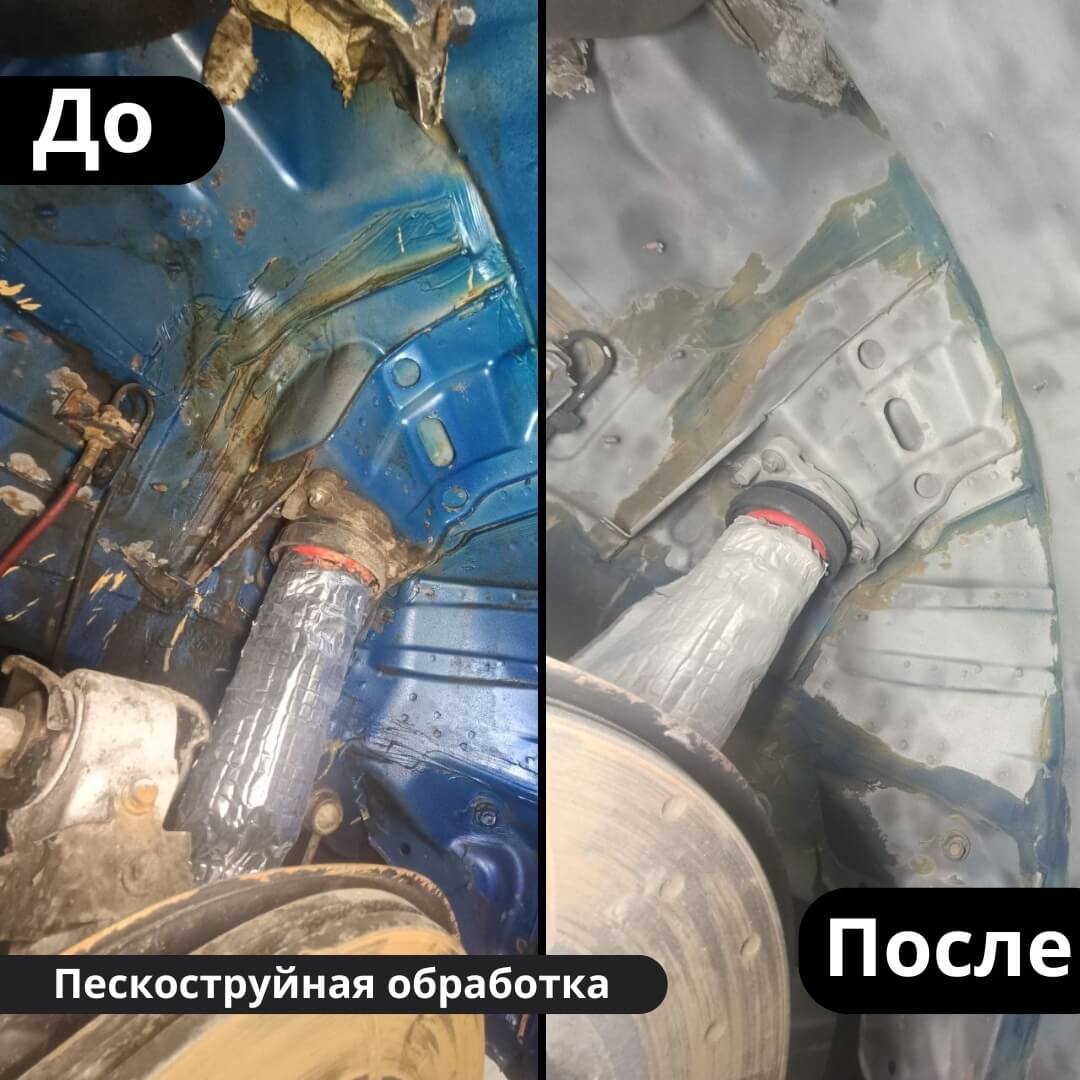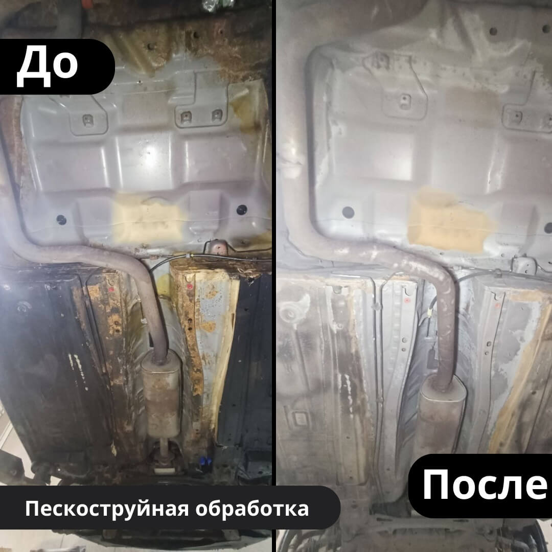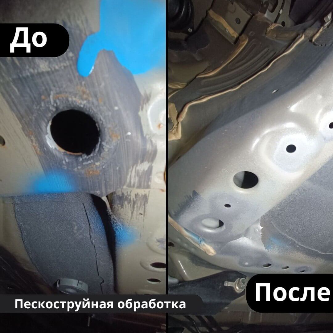 После мойки и сушки мы обнаружили местами очаги поверхностной коррозии, которые устранили методом пескоструйной обработки. Далее произвели цинкование и обработку скрытых полостей, сварных швов и точек. После этого на автомобиль нанесли антикоррозийный состав премиального уровня.