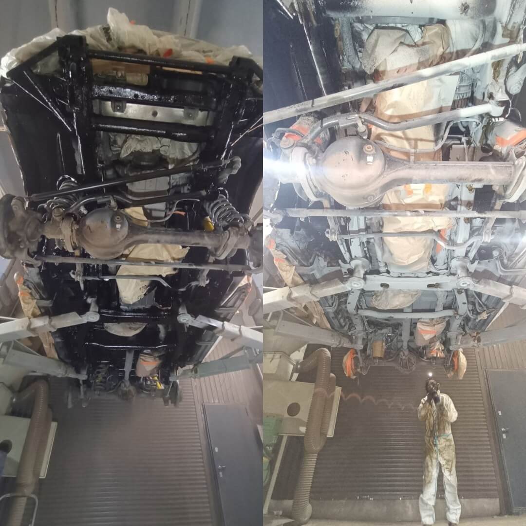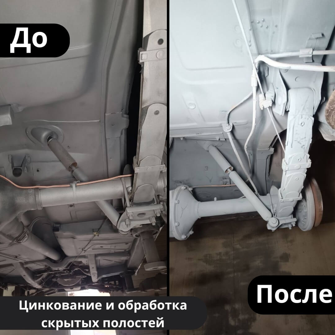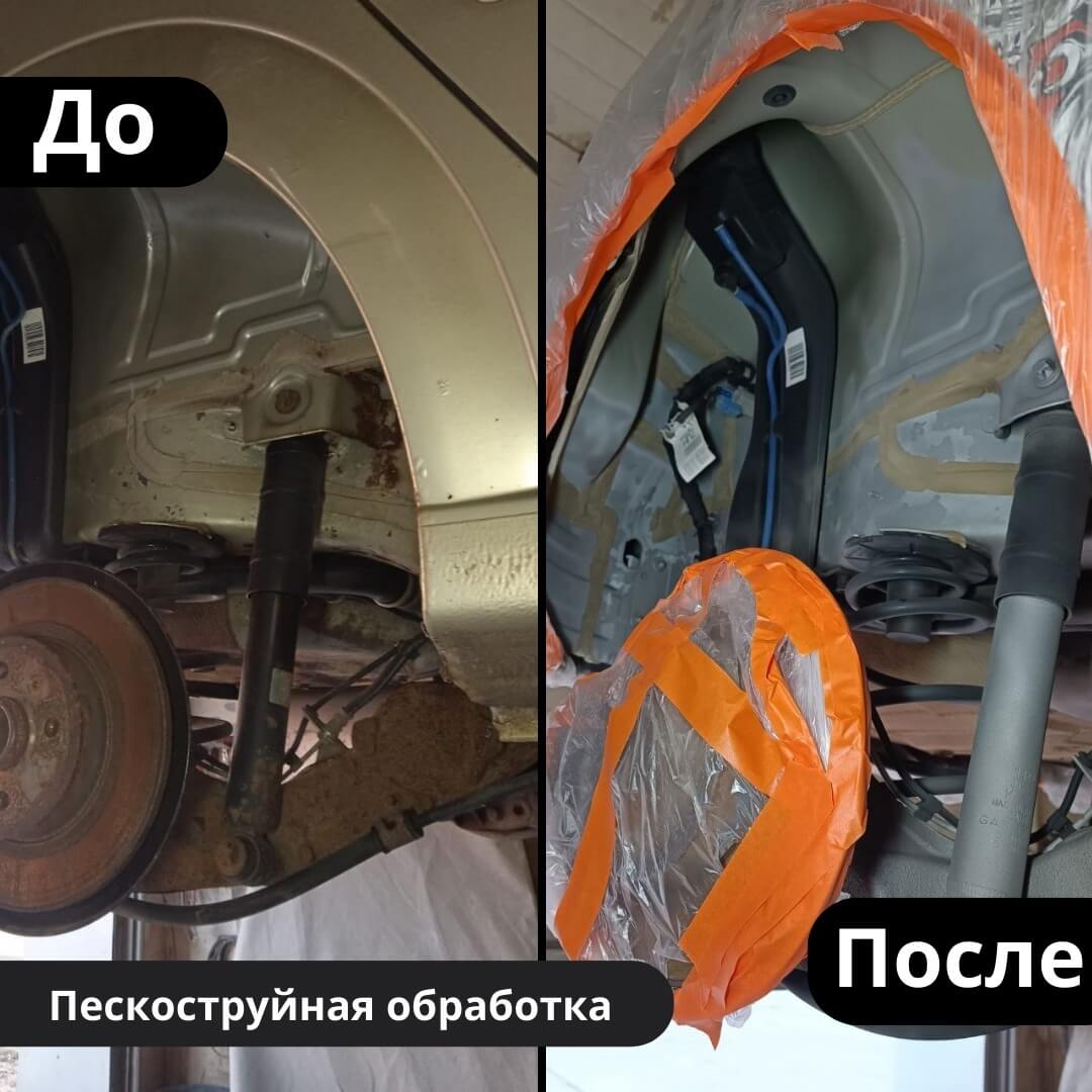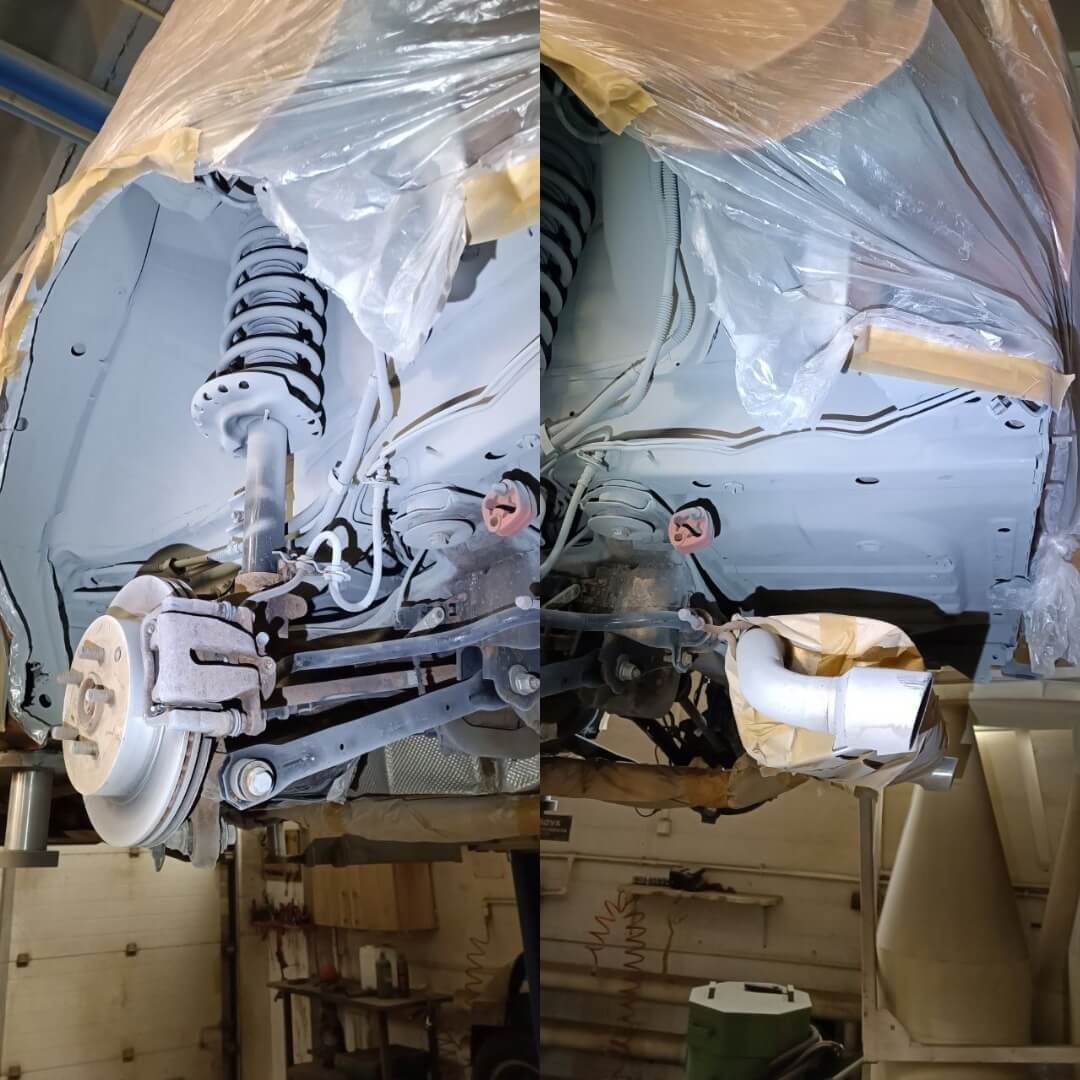 Мы произвели следующие работы: 1. Мойка с разбором и сушка 2. Пескоструйная обработка днища 3. Цинкование 4. Обработка скрытых полостей 5. Антикоррозийная обработка 6. Покраска подвески