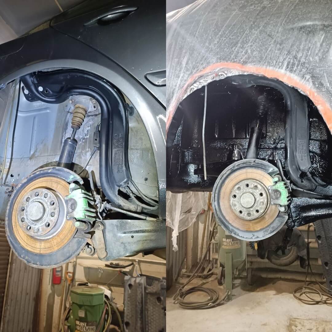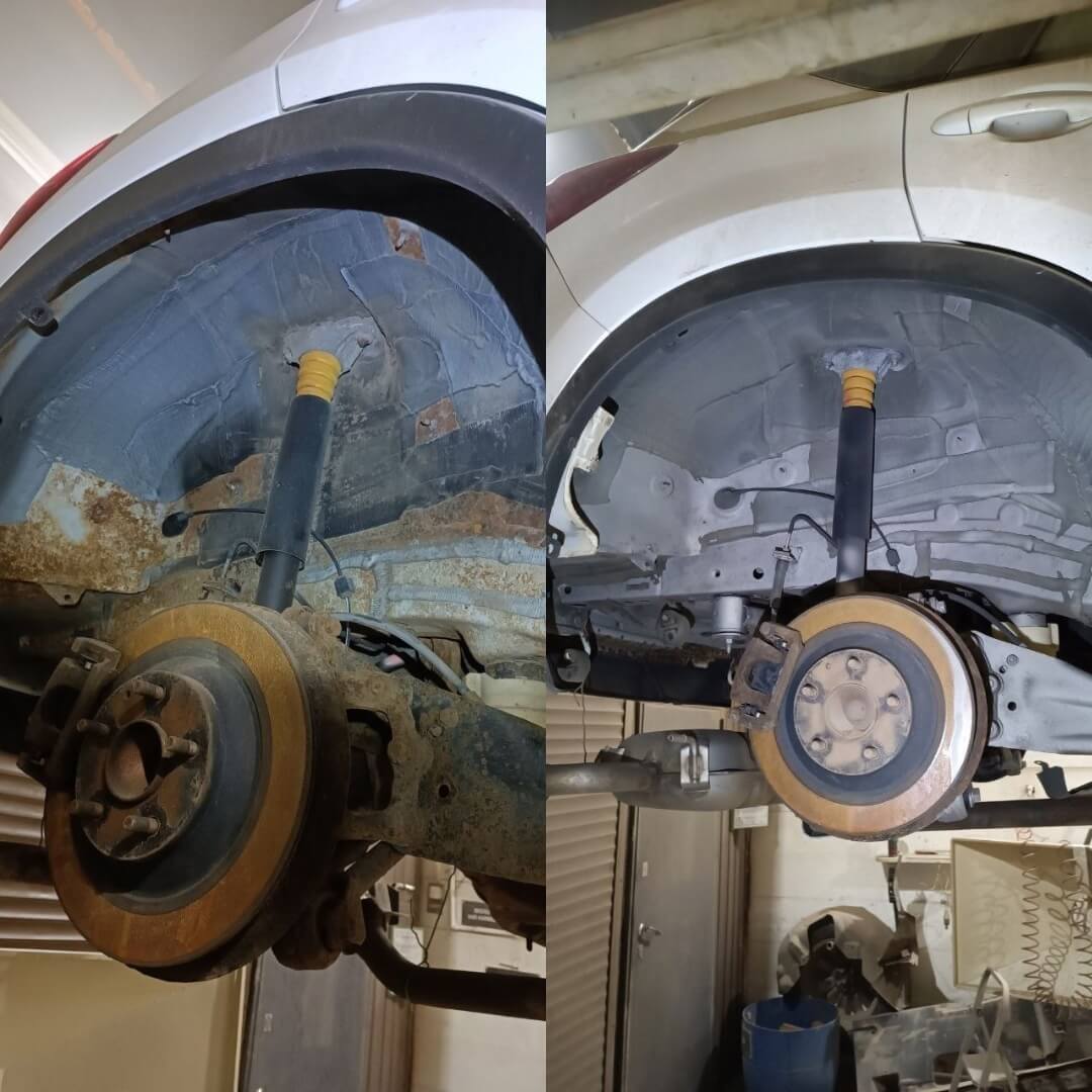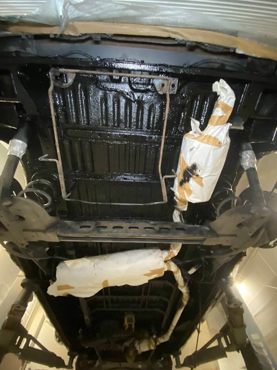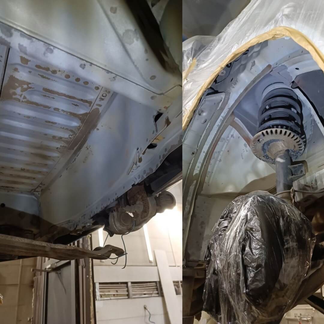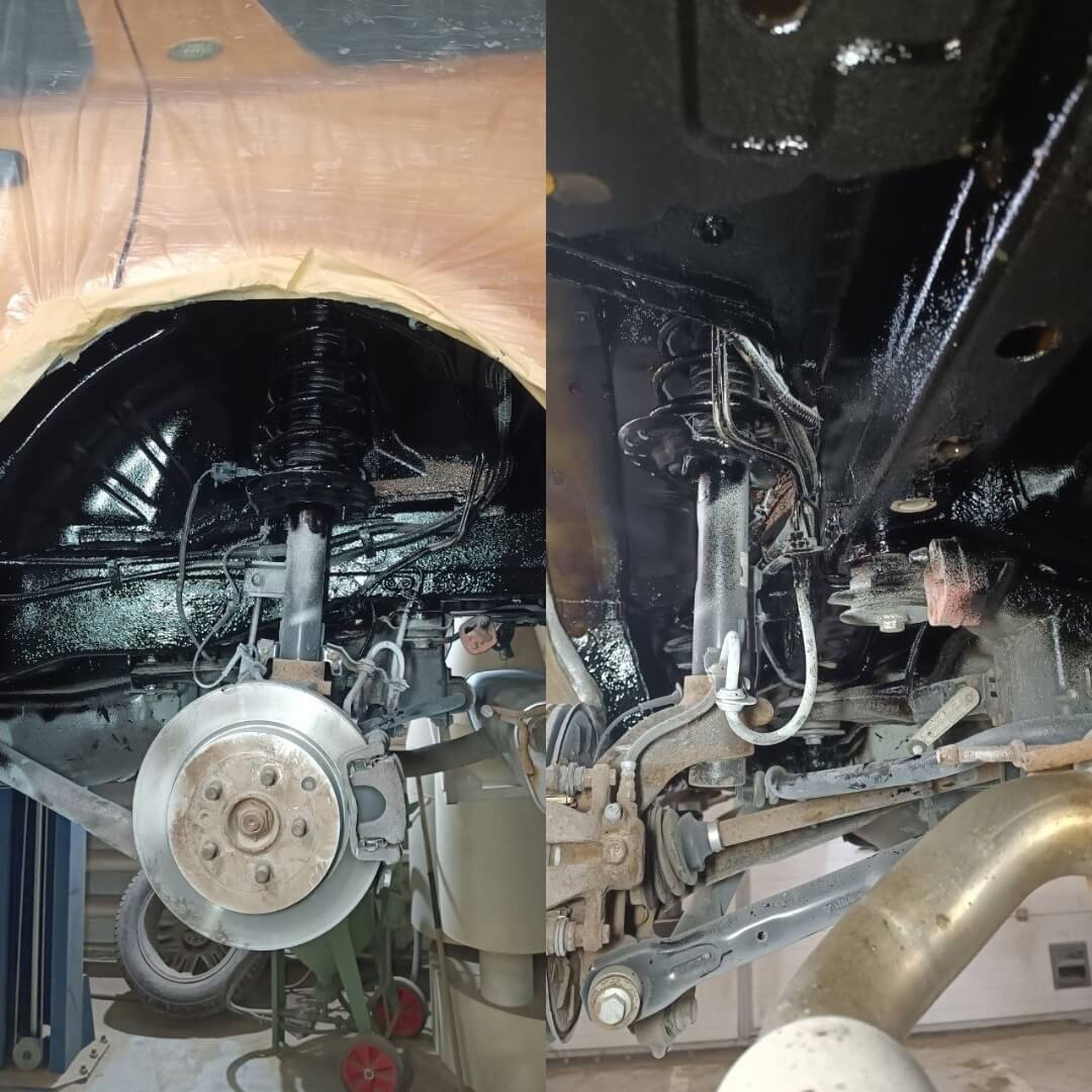 Мы произвели следующие работы: 1. Мойка с разбором и сушка 2. Пескоструйная обработка днища 3. Цинкование 4. Обработка скрытых полостей 5. Антикоррозийная обработка 6. Покраска подвески
