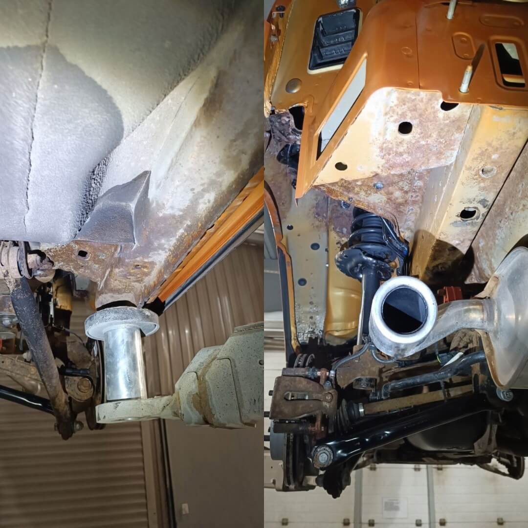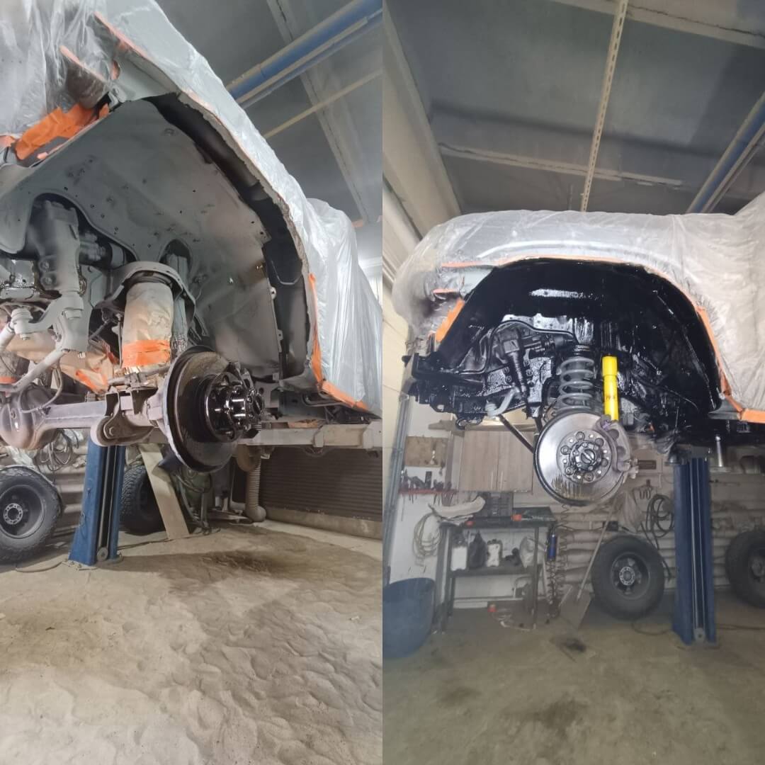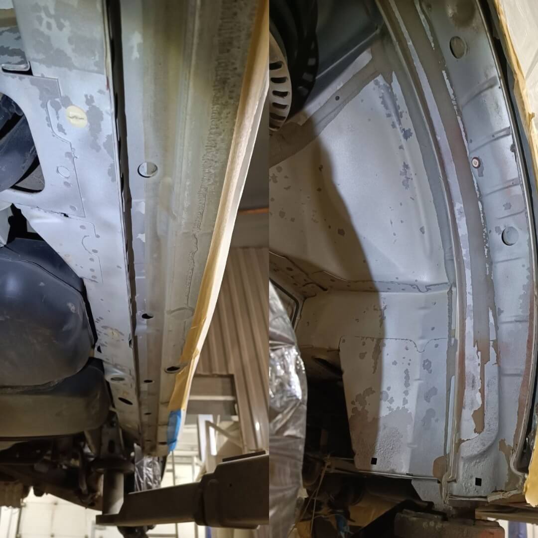 🤝Наша команда устранила все недочеты, удалили ржавчину в местах где она появилась. Затем все скрытые полости, рама, сварные точки и тд были обработаны составом на воско-масляной основе Mercasol 831ML. Далее мы нанесли уже антикоррозийный состав Mercasol 845.