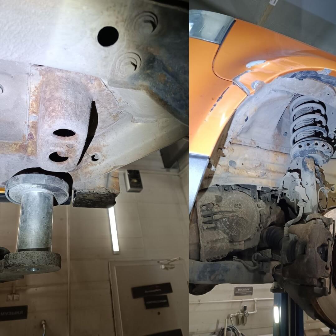 При покупке на автомобиле был антикор, который делался у официалов. Не смотря на это, владелец решил приехать к нам на осмотр, и как оказалось, не зря. Не смотря на то, что автомобиль проездил совсем не много, мы увидели массу печальных моментов: