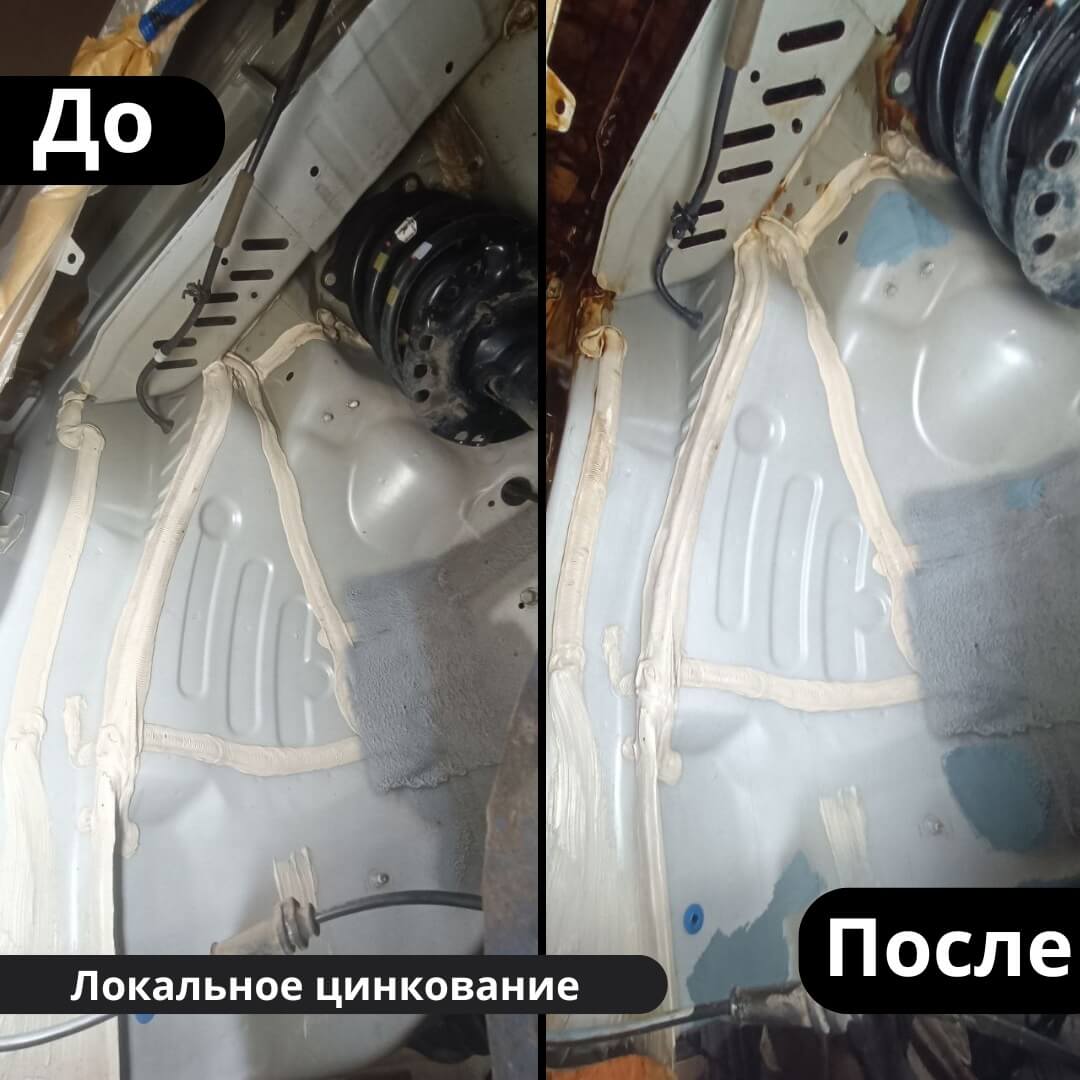 🚙Далее все участки, где производился пескоструй были обработаны цинком, чтоб защщитить металл.