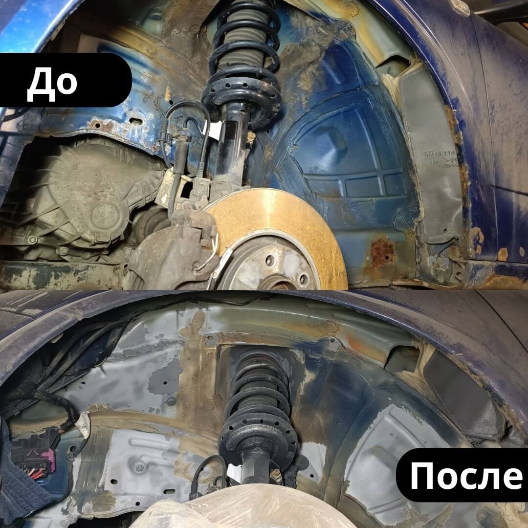 Мы произвели следующие работы: 1. Мойка с разбором и сушка 2. Обработка скрытых полостей составом Mercasol 831ML 3. Антикоррозийная обработка составом Mercasol 845